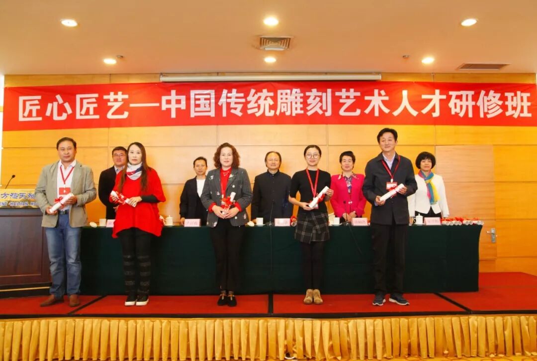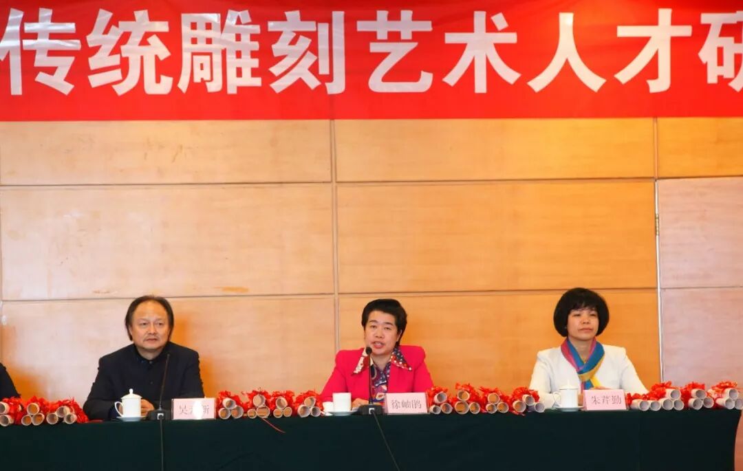 徐岫鹃主任主持了仪式,她高度赞扬了研修班学员和与会工作人员为本次培训活动的成功所做的努力,并希望以此次研修活动为平台,促进学习,加强联络,继续消化吸收研修班专家课程,不断钻研,为传统雕刻创造性转化和创新性发展做出新的贡献。