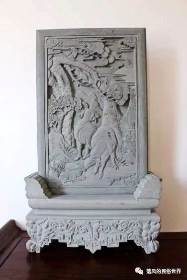 村中另一幅古代精品《渔樵耕读》,系清代民间艺人尹光德创作,该作品构思巧妙,构图严整,描绘了江南自然风光,画面对称、均衡,透视也较准确,而又富有装饰趣味,画面每一物象精心雕刻,惟妙惟肖,具有强烈的纵深感和空间感,是一件精致的浮雕作品。